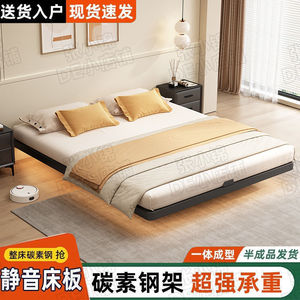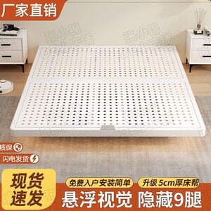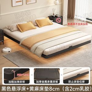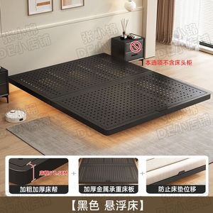 ベッドサイドなしの吊り下げベッド、鉄製フレーム、スチールフレーム、アイアンアート、マスターベッドルームダブルベッド、吊り下げ暗号化パネル畳、スケルトンベッド
