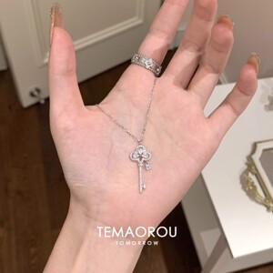 クラウンキーペンダント鎖骨チェーンライト高級ハイエンド多用途シルバージュエリー春夏新作ネックレス