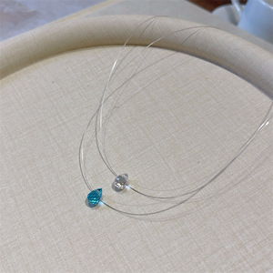 时尚简约人鱼之泪手工切割水滴水晶宝石隐形项链鱼线锁骨链女