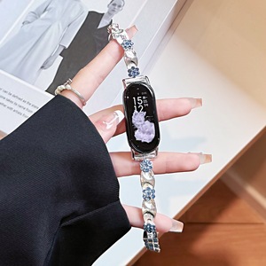 适用于小米10手环8/9pro表带红米4/5丝绸贝壳花朵表链FIT4华为GT5