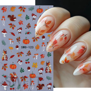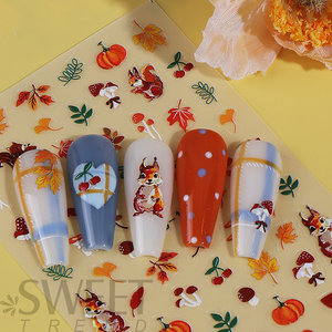 クロスボーダー新しいネイルアートステッカーイン秋と冬の感謝祭カエデの葉リスの花マイクロ彫刻ネイル粘着デカール