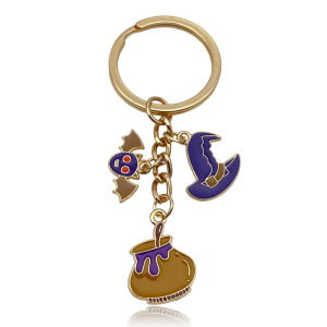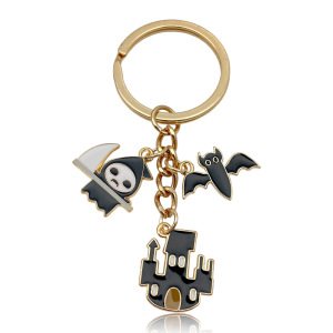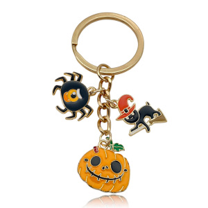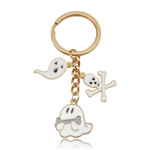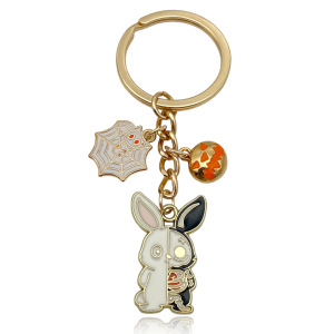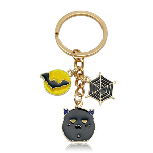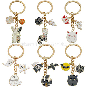 2025 クロスボーダーハロウィン白黒漫画ゴーストクモコウモリキーホルダーバッグ合金ペンダントペンダント