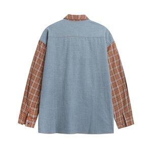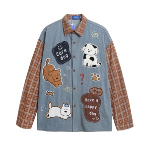 美式复古拼接小狗刺绣长袖衬衫男女秋季时尚宽松百搭情侣衬衣外套
