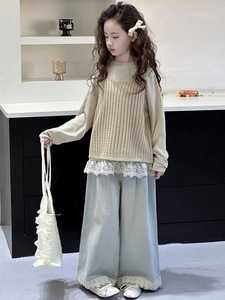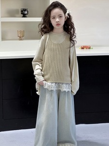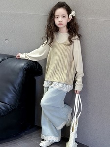 女童马甲三件套秋季2025新款儿童秋装洋气森系女大童套装春秋