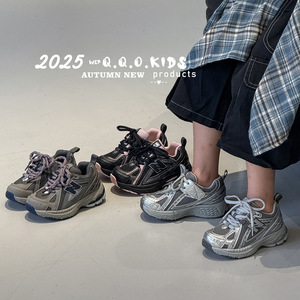QQO童鞋 2025秋季新款儿童轻便字母运动鞋韩版男女童网面透气跑鞋