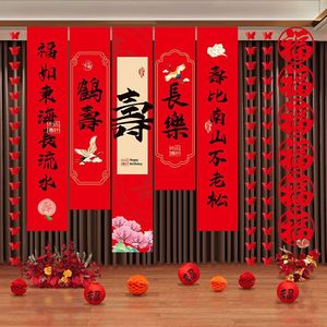 老人6070寿宴过寿布置生日场景装饰背景墙挂布条幅爸爸妈妈80大寿