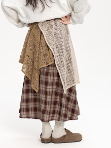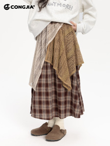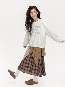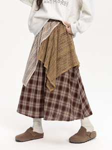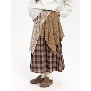 女童复古格纹半身裙2025秋装新款儿童撞色拼接a字裙高腰显瘦裙子