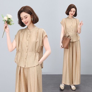 新しいアマゾンヨーロッパとアメリカのカジュアルスポーツウェアスーツ夏の新しい韓国スタイルのママの服ルーズでスリムな2点セット