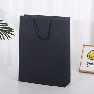 スポット卸売黒ギフトバッグお土産衣類ハンドバッグ卸売黒段ボール袋印刷ロゴ工場直販