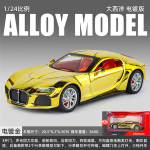 新豪迪合金车模1:24大西洋电镀版跑车声光回力玩具车音效模型摆件