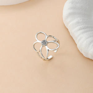 欧美时尚镂空花朵戒指夸张花卉花朵金银双色开口可调节戒指厂家