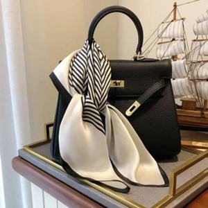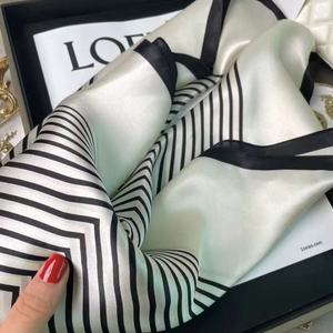 100%桑蚕丝53真丝缎面黑白回字格小方巾女春夏季明星同款领巾丝巾