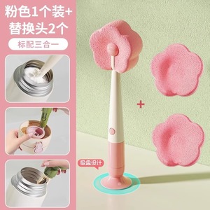 吸盘三合一杯刷(樱花粉)+小粉花替换装*2