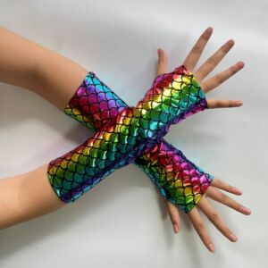 欧美女士聚会服饰手套袖套万圣节舞台表演鱼鳞手套美人鱼手套臂套