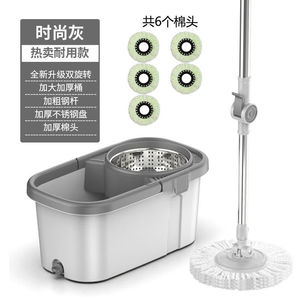 时尚白灰色拖把桶+加强杆+6个拖布头