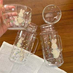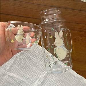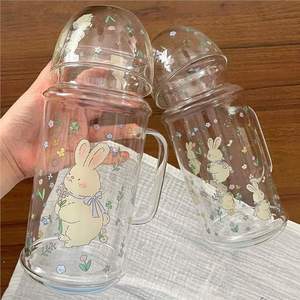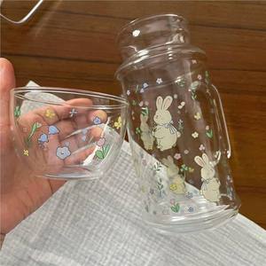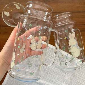 兔兔玻璃杯大容量耐高温喝水杯子高颜值宿舍用家用带手柄1L饮水壶