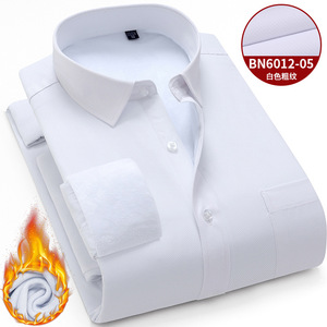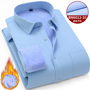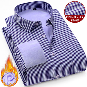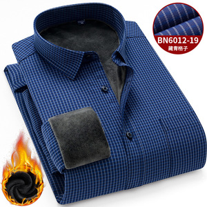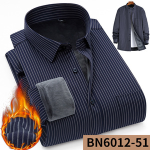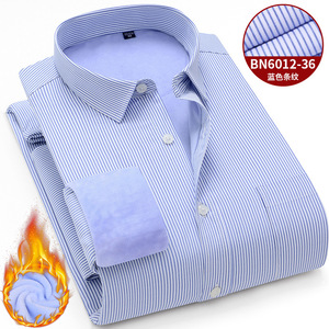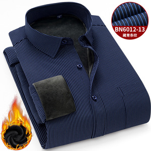 冬季新款男士加绒加厚长袖衬衫中年爸爸装商务休闲条纹保暖衬衣