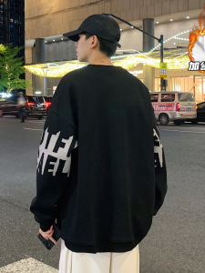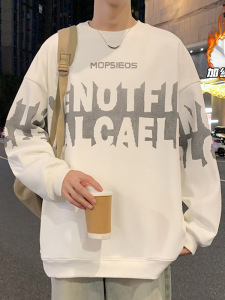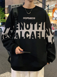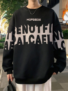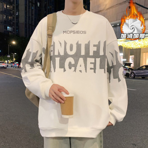 加绒加厚字母印花卫衣男士秋冬季装大码青少年休闲内搭长袖T恤潮
