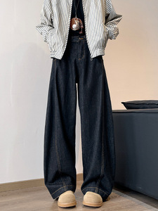 丹宁黑色弯刀牛仔裤男款春秋cleanfit老钱风裤子直筒宽松阔腿长裤