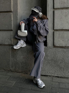 宽松户外防风运动纯色夹克外套长裤套装2025跨境欧美风新款批发
