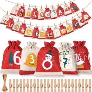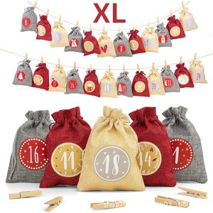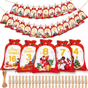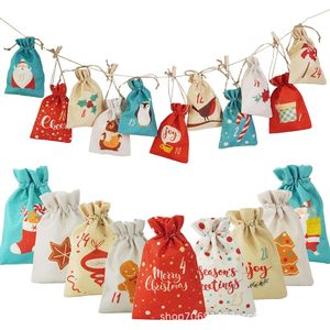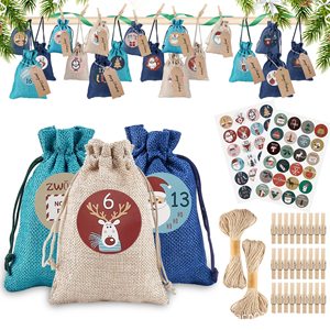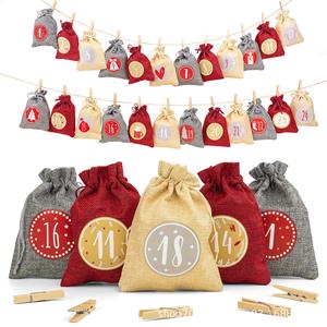 麻布束口袋圣诞树装饰品24个数字布袋子降临日历糖果礼品袋装饰品