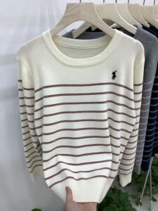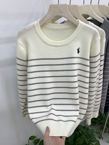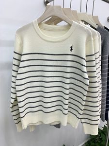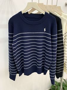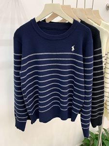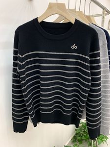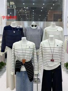 字母alo女高级感复古条纹刺绣内搭长袖针织打底衫小马气质上衣