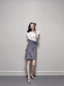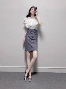 白色荷叶边小飞袖衬衫女夏季温柔风气质时尚套装a字半身裙两件套