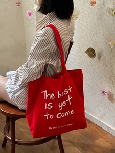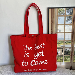 原创韩系红色帆布包女ins慵懒风大容量单肩包百搭学生通勤手提袋