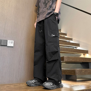美式高街工装裤男士夏季薄款青少年宽松直筒休闲长裤子透气伞兵裤
