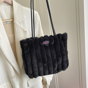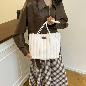 毛绒托特包大容量腋下手提包包女2025时尚通勤女包休闲单肩女包