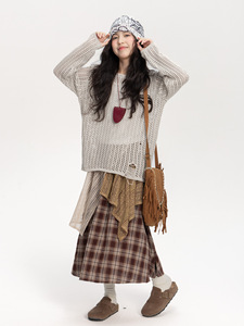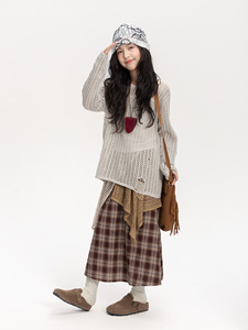 女童镂空针织罩衫2025春秋新款儿童慵懒休闲宽松长袖圆领百搭上衣