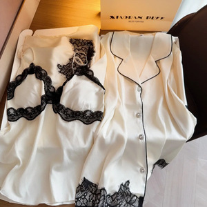 法式轻奢高级冰丝睡衣女款春秋款新款蕾丝花边长袖长裤家居服套装