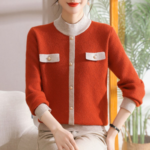 秋冬季妈妈装加绒毛衣中老年女士针织衫加厚毛衫保暖婆婆打底上衣