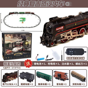 儿童蒸汽火车喷雾电动轨道小火车仿真复古绿皮车厢模型玩具男孩