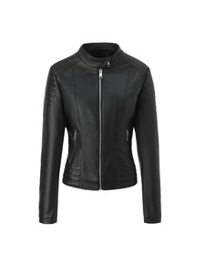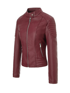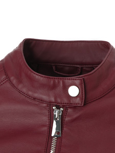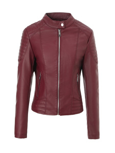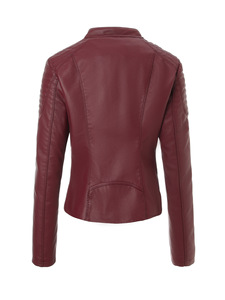跨境女士欧码修身皮衣秋冬立领外套复古机车皮夹克Women's coat