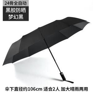 24龙骨加大加固黑胶自动雨伞晴雨两用三折叠男士雨伞批发伞广告伞