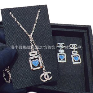 新款香奶奶高版本香水瓶蓝色爱心项链女时尚吊坠轻奢小香风锁骨链