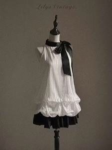 莉莉丝 vintage古着千金风 挂脖花苞连衣裙 蝴蝶结拼接短裙