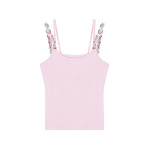 韩版ins甜妹绣花双肩带美背背心带胸垫内衣外穿打底无袖抹胸上衣