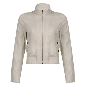 秋季辣妹街头潮流纯色拉链拼接翻领上衣时尚修身休闲工装夹克外套
