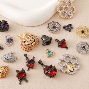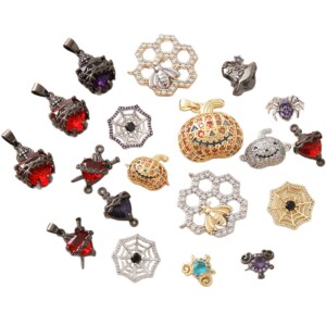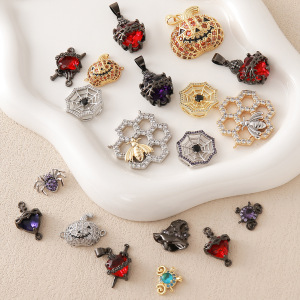 跨境 热销镶钻蜘蛛南瓜圣心锆石配饰创意百搭铜万圣节饰品diy配件
