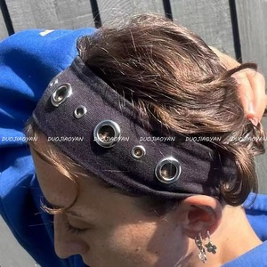 国境を越えた人気のパンクスタイルのヘッドバンド音楽祭ロック生地中空弾性ヘッドバンドレトロ甘くてクールなソリッドカラーのヘッドバンド