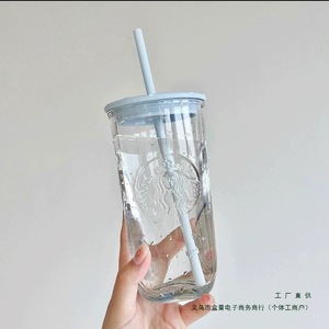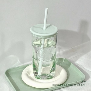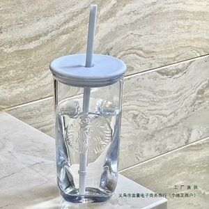 日用餐杯子2025年夏季新品自然系列湖水蓝小清新三角形玻璃吸管杯