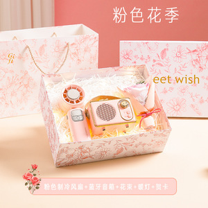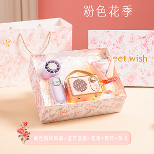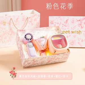 粉色制冷风扇+香薰+花束+暖灯+贺卡