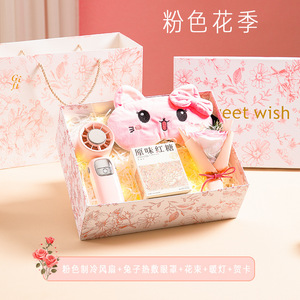 粉色制冷风扇+兔子热敷眼罩+花束+暖灯+贺卡