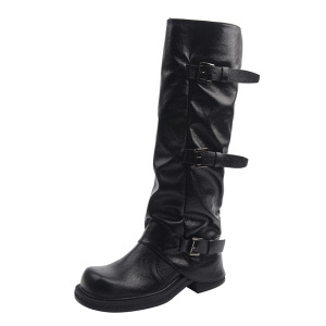 2025复古粗跟中高筒靴西部牛仔堆堆靴骑士靴早秋马丁靴法式女靴子
