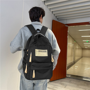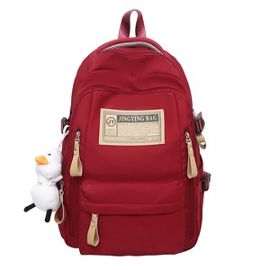 书包大学生女生高中学生酒红色大容量初中生背包印logo批发双肩包