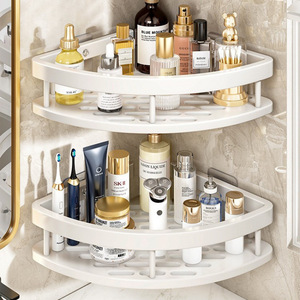 跨境浴室三角置物架免打孔卫生间壁挂式洗手间收纳架子免费贴标签