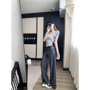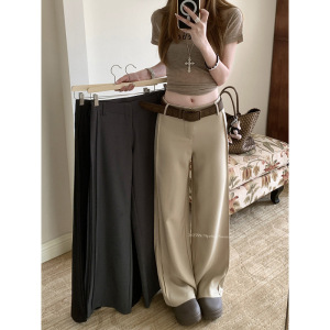 卡其色西装裤休闲裤女装夏季低腰宽松直筒垂感阔腿裤子小个子长裤