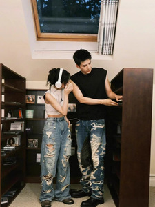 GVC正确版高版本25SS做旧破坏补丁水洗牛仔裤明星同款牛仔长裤